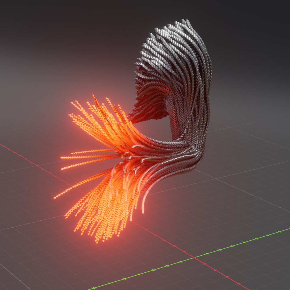 This takes a rigged mesh made of lines and converts it into a futuristic robotic arm made of metal cables.