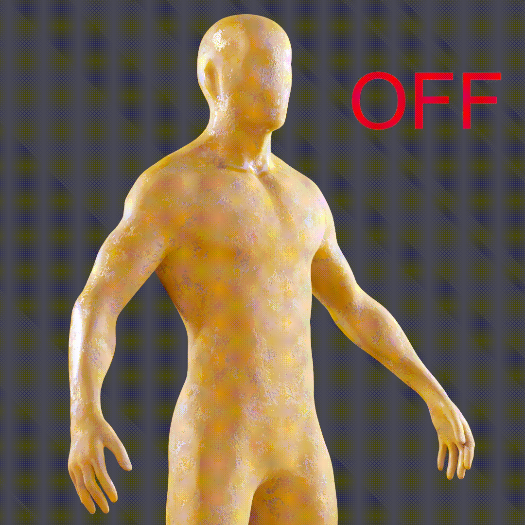 The modifier outputs and "Edge" attribute that can be used in the shader editor to add detail like flaking paint to the creases.